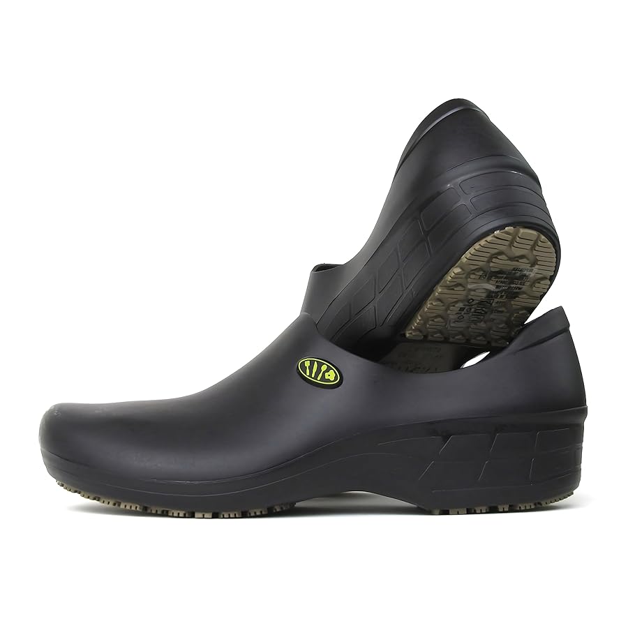 An unexpected essential for hot kitchens. Made from heat-resistant materials with a closed toe and rubberized grip, these slides provide breathable protection without overheating. Perfect for quick service environments without open flames.